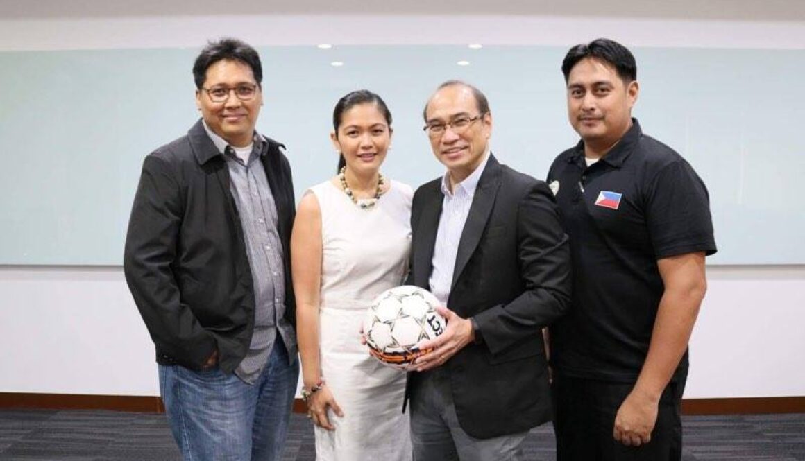 Rei Abrazaldo, Allianz PNB Life Branding Communications and Digital Director; Gae Martinez, Allianz PNB Life Chief Marketing Officer; Danny Moran, Henry Moran Foundation President; and Ake Pastoral, Philippine Football Federation National Grassroots Officer.