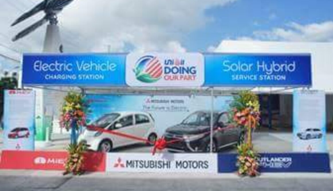 Unioil Petroleum Philippines Inc. (Unioil) has unveiled its first electric vehicle (EV) charging station on its newly-opened Unioil Solar Hybrid service station at Congressional Avenue Extension, Quezon City. The state-of-the-art Mitsubishi i-MiEV fully-electric vehicle and the Mitsubishi Outlander Plug-In Hybrid Electric Vehicle (PHEV) were showcased during the event.