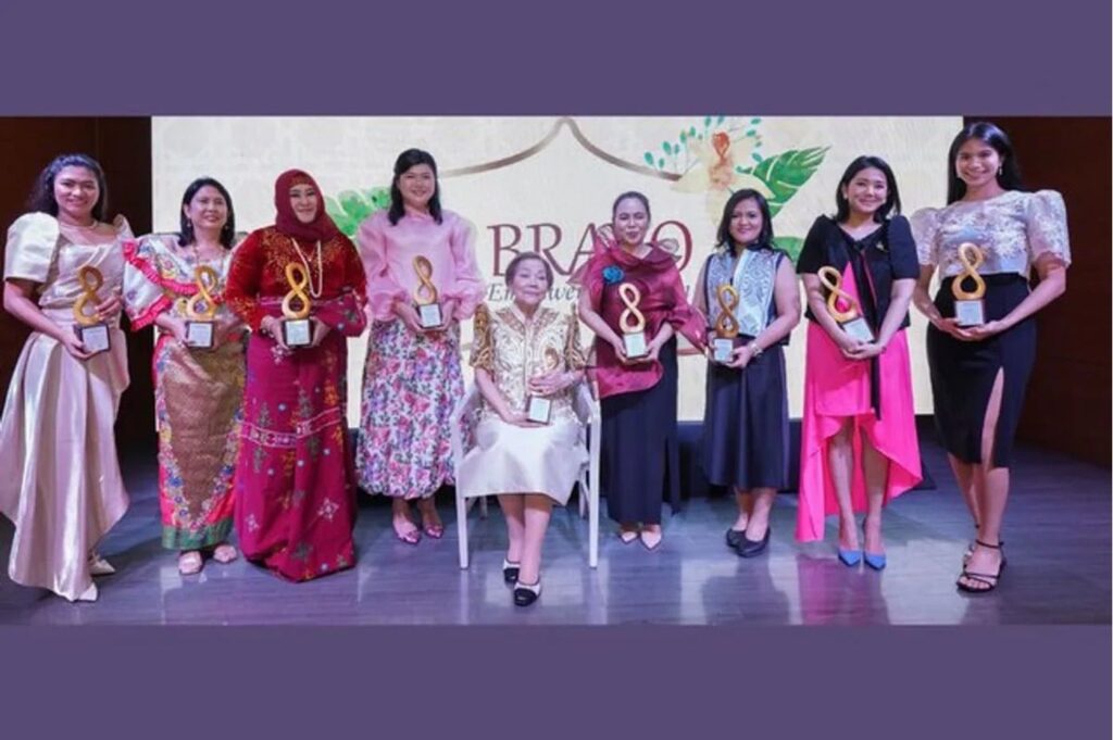 The Bravo Empowered Women 2025 awardees (L-R): Maryan Cabasag Diaros (Education), Doreen Alicia Gamboa (Culinary), Sittie Habiba Sarip (Media & Public Affairs), Dr. Emmeline Cua-De Los Santos (STEM), Glenda Barretto (Lifetime Achievement), Andie Estrada (Social Services), Larissa Palma Chavez (Arts, Culture & Heritage), Maiki Enriquez-Oreta (Business), and Jamie Berberabe Lim (Sports).
