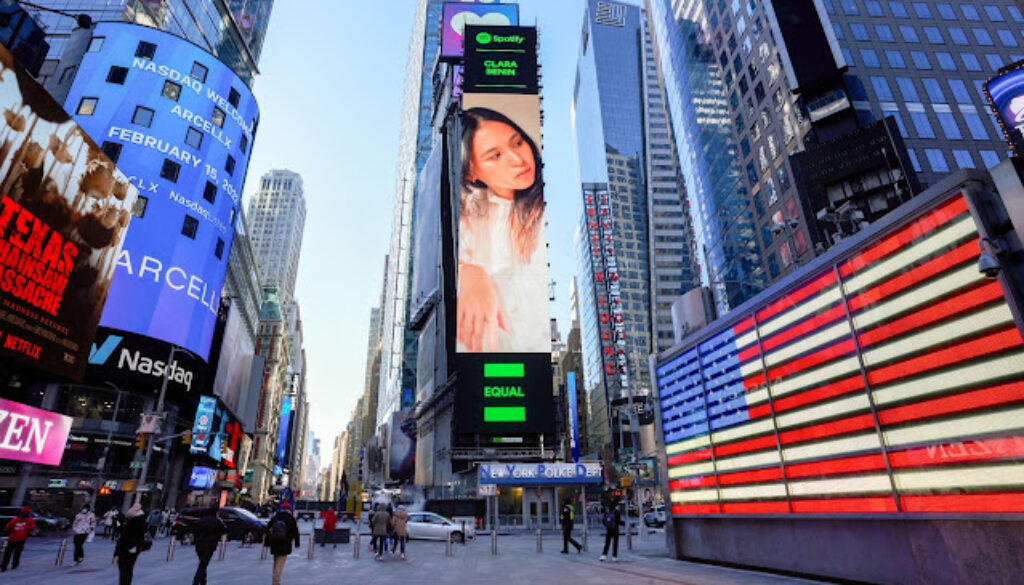 A month ahead of International Women’s Day, Filipino singer-songwriter Clara Benin lands on a Times Square, New York billboard as part of Spotify’s EQUAL Campaign.