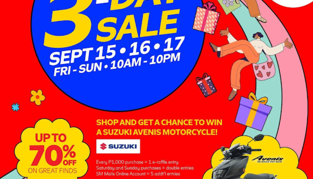 Purchases could even give you a heap of chances to bring home a brand-new Suzuki Avenis motorcycle! To join, shoppers may avail P1000 worth of purchase to earn 1 e-raffle entry. Increase your chances of winning by getting additional coupons on Saturday (September 16) and Sunday (September 17) to double the entries. Shoppers may also get 5 additional entries through their SM Malls Online Account.