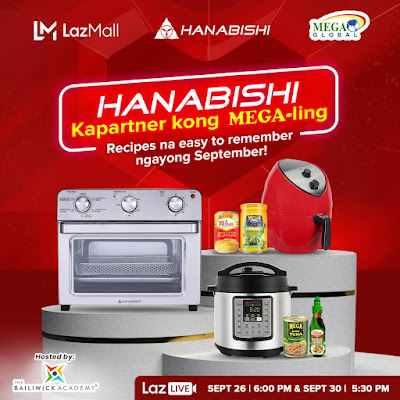 Hanabishi Appliances and Mega Prime Global team up once more for a LazLive cooking demonstration on September 26 at 6:00 PM and September 30 at 5:30 PM. Both events will be live streamed on Hanabishi’s official Facebook account.