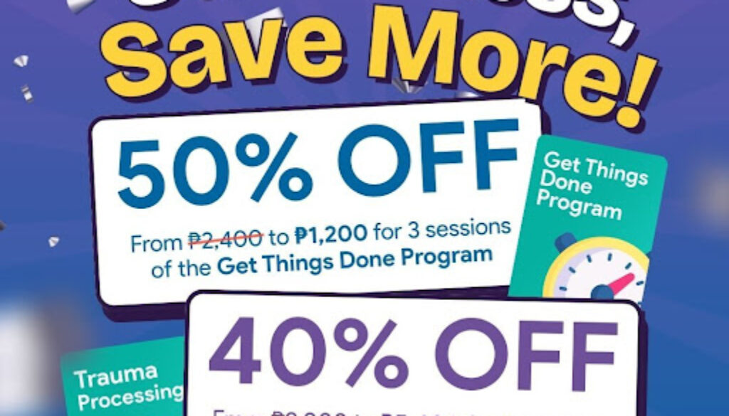 - Get Things Done Program – Now ₱1,200 for 3 1-hour sessions with a trained Motivation Coach from ₱2,400 (50% OFF)