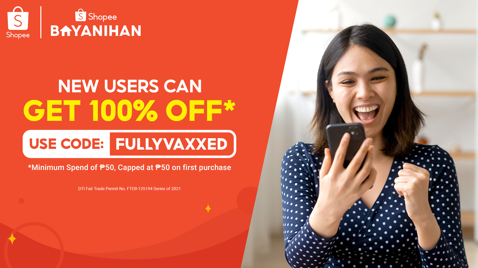 New Shopee Users Can Enjoy Up to 100% Off* with the Code FULLYVAXXED