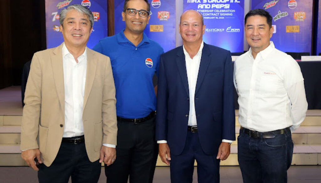 PCPPI and Max’s Group, Inc. renew partnership until 2025. Max’s Group, Inc. (MGI), the country’s largest casual dining restaurant group, has recently renewed its partnership with Pepsi-Cola Products Philippines, Inc. (PCPPI) to exclusively serve the latter’s beverage brands until 2025. Shown in the photo above during the ceremonial renewal event are (from left to right) PCPPI Chief Commercial Officer Lyndon Cuadra, PepsiCo General Manager for the Philippines, Malaysia, and Singapore Nitin Bhandari, MGI President and Chief Executive Officer Robert Trota, and MGI Director Dave Fuentebella.