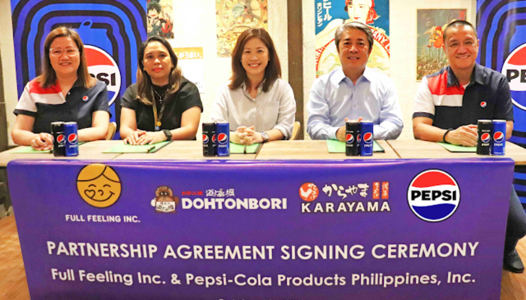 Pepsi-Cola Products Philippines, Inc. (PCPPI) recently welcomed Full Feeling Inc. to its extensive roster of clients. Under the engagement, Full Feeling Inc.’s Dohtonbori and Karayama restaurants will serve carbonated soft drink brands such as Pepsi, Mountain Dew, 7-Up, Mirinda, and Mug Root Beer alongside their signature Japanese specialties until 2026. Currently, Dohtonbori has seven branches in Metro Manila and Luzon, and Karayama’s flagship restaurant is located in Quezon City.