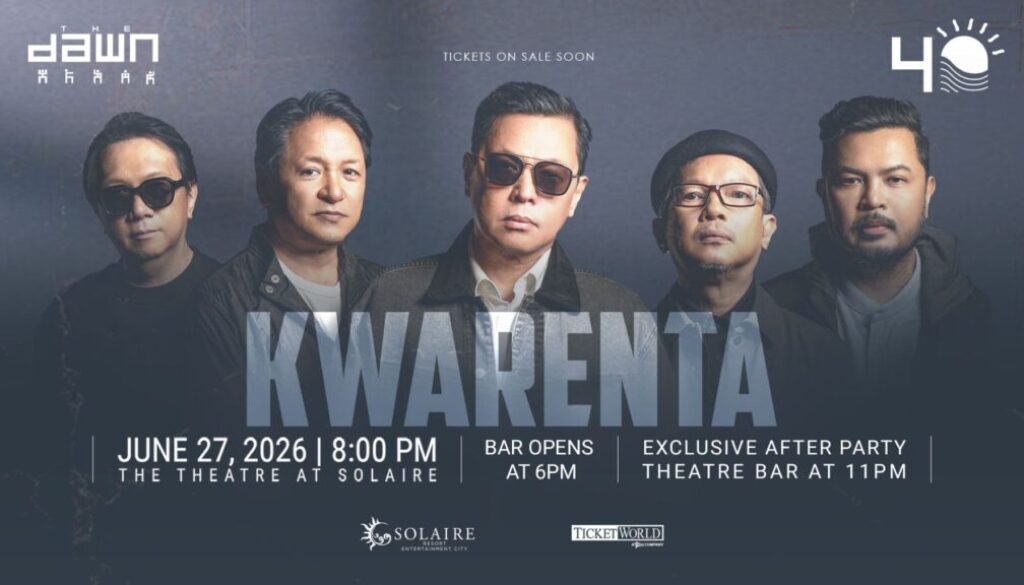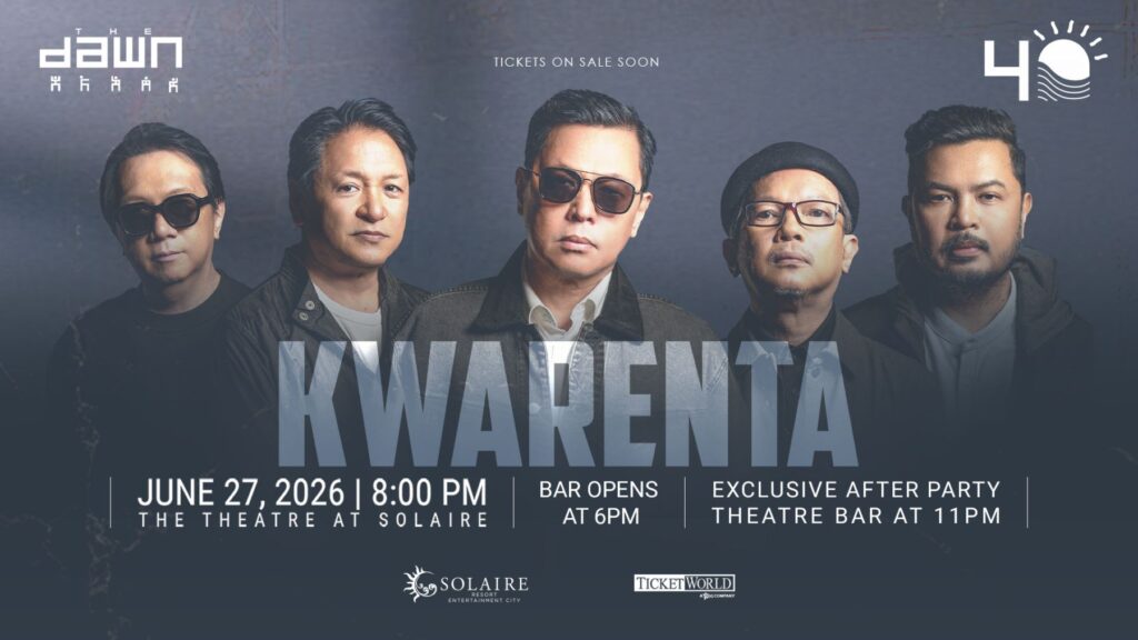Dubbed “Kwarenta,” the highly anticipated concert will take place at The Theatre at Solaire on Saturday, June 27, 2026. The concert also marks The Dawn’s legacy as one of the pillars of Filipino rock music, producing remarkable classics that resonate with listeners of all ages and backgrounds.