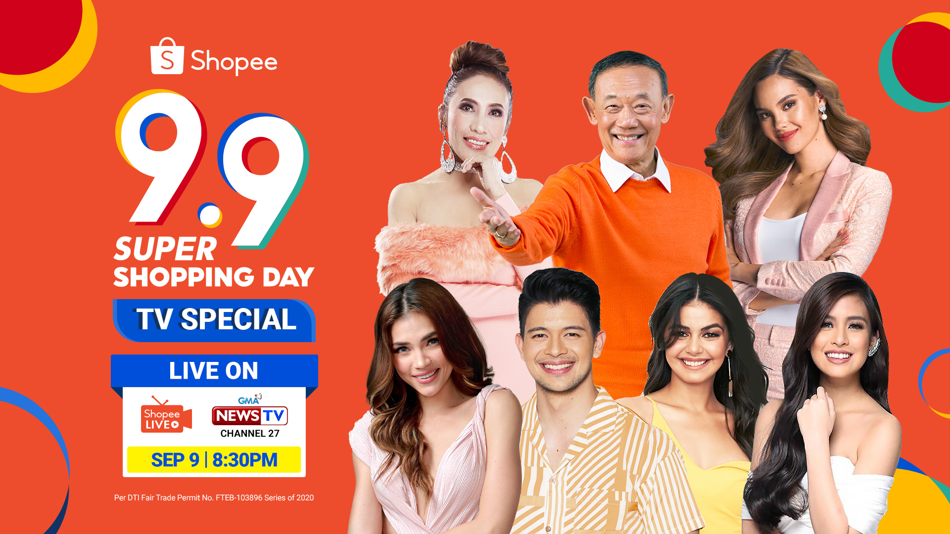 MANILA, SEPTEMBER 1, 2020 – Shopee, the leading e-commerce platform in Southeast Asia and Taiwan, invites everyone to watch the anticipated 9.9 Super Shopping Day TV Special happening on September 9 at 8:30 PM. The 2-hour-long show will be simulcast on both GMA News TV (GNTV) and Shopee Live to reach more Filipino audiences. Viewers can catch an outstanding performance and appearance by Shopee’s Brand Ambassador Jose Mari Chan with top Filipino celebrities such as Catriona Gray, Ai-Ai delas Alas, Rhian Ramos, Gabbi Garcia, and many more.