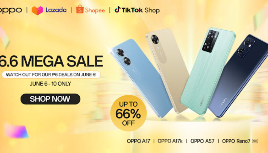 OPPO fans can take advantage of this exciting promo from June 6 to 10, with massive discounts of up to 66% on select OPPO smartphones, all-day vouchers, exclusive freebies, and special ₱6 bargains on OPPO’s official TikTok, Shopee and Lazada platforms.